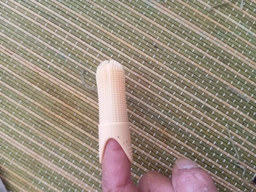Tanner Bernhard I cleaned my dog's teeth with this doggy toothbrush the first day i got it. She was not upset by it, and she was a very skittish dog to begin with.
